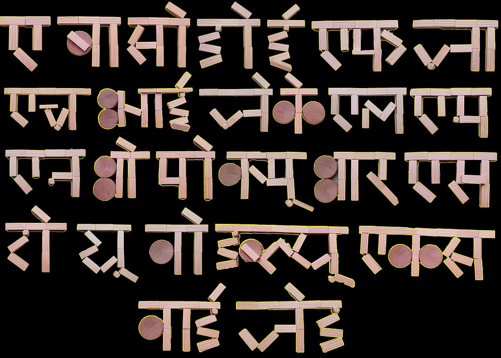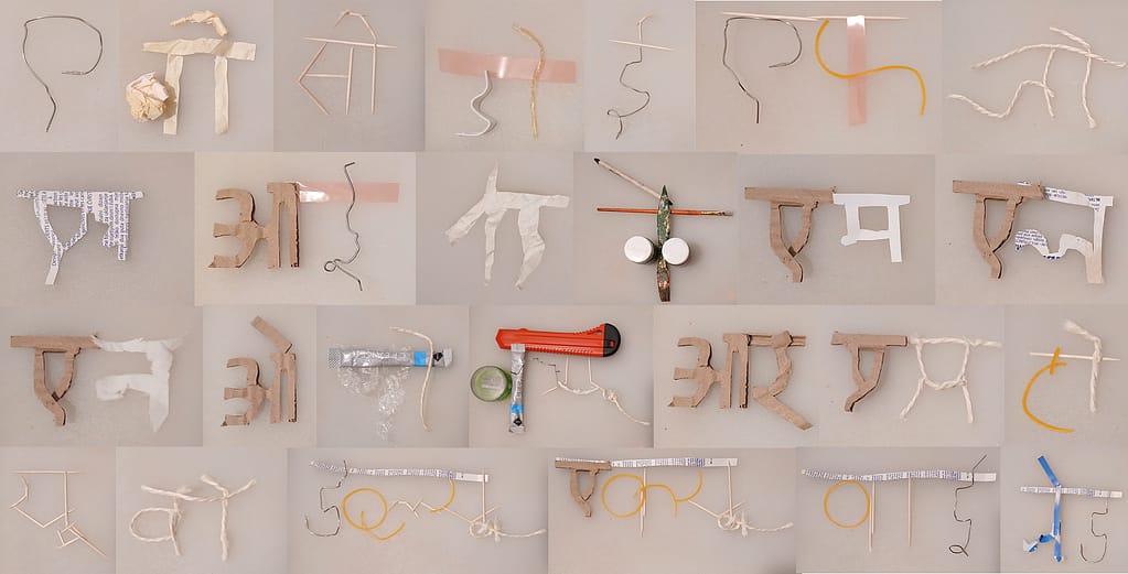 Week 1 – Making 2 alphabets using different items from our residence. I selected the language hindi as I am born from my home country India.
