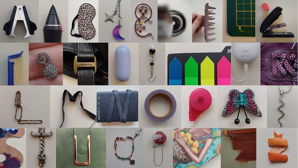 Instead of taking pictures of the objects I decided to draw them in color. This way, I could practise drawing from real life. In total I drew 17 items.