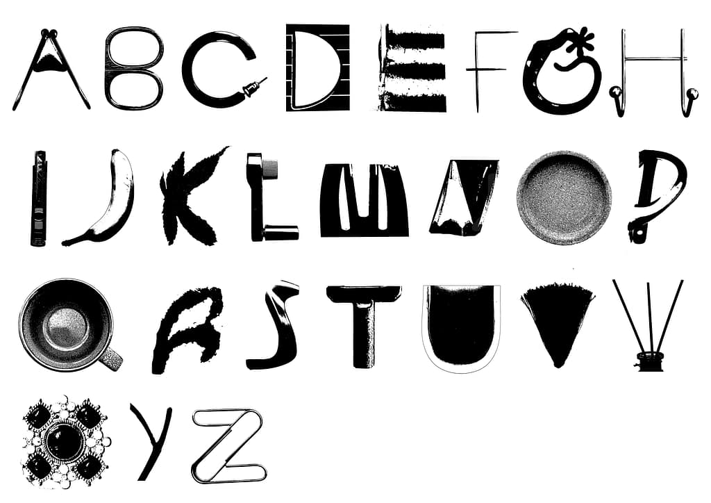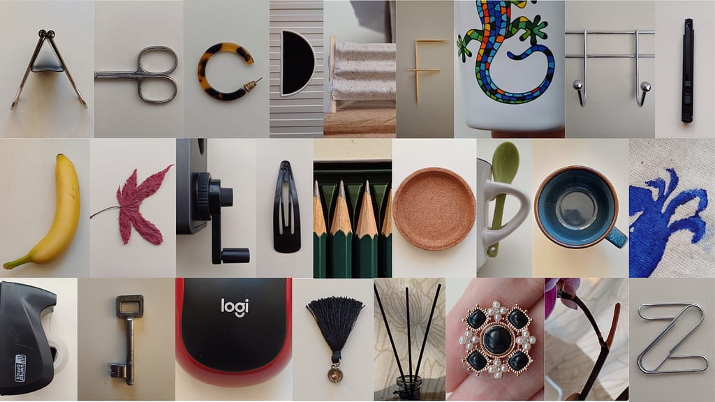 I also wanted to create an English alphabet, because it’s my second language and I’ve grown accustomed to it during my studies here and my daily life. For this I used mundane objects and trinkets I’ve collected here in the Netherlands, which made the second alphabet less substantial but fun to create nonetheless.