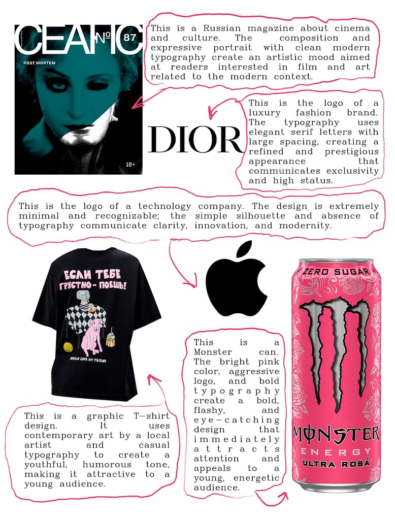 Spread 2: On Grid is is more symbolic and intuitive, shifting towards commercial graphic designs. It incorporates the logos of two major brands, Apple and Dior, exploring contrast and critique.